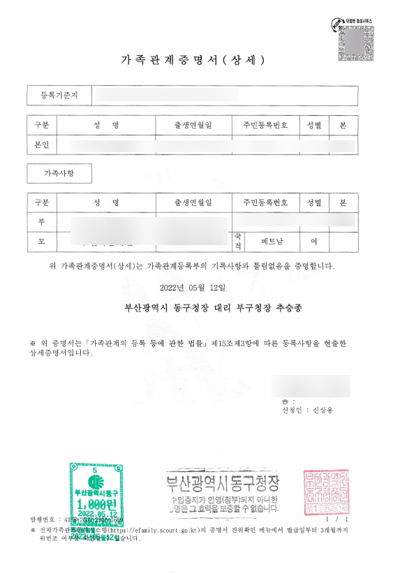 다만, 베트남에서 출생한 경우 일부 베트남 서류를 들여와야 합니다.