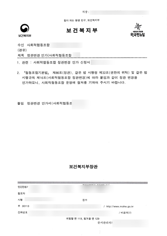 사회적협동조합의 대표자, 정관 변경 인가 완료된 결과의 포스팅입니다.