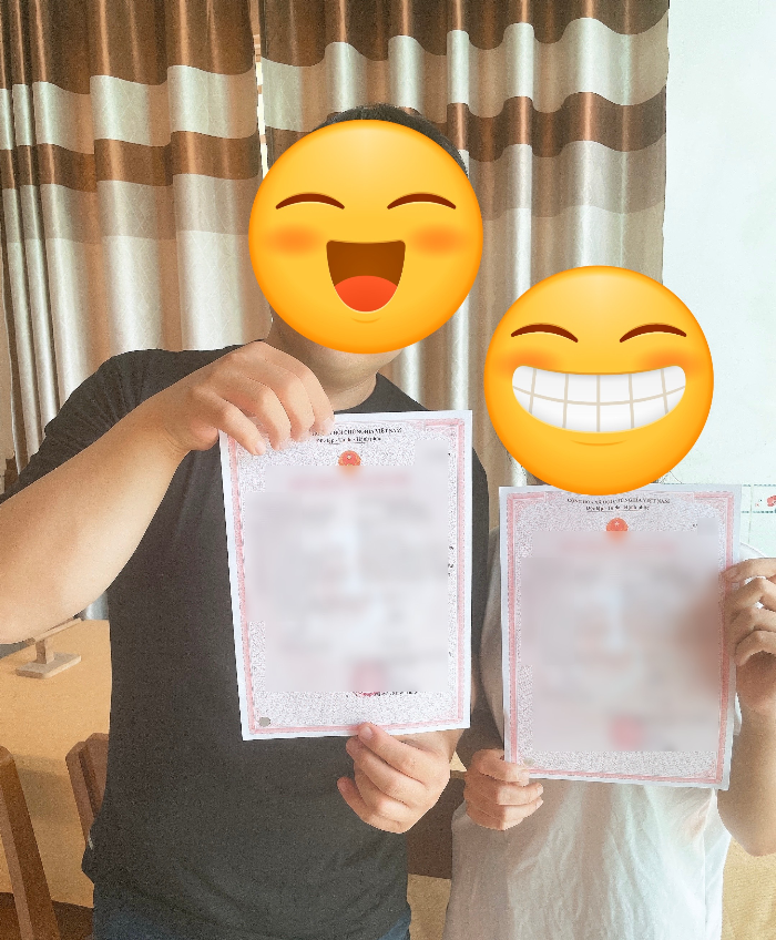 베트남에서 혼인신고를 하면 결혼증명서가 나오고, 그러면 한국에서 필요한 혼인신고 서류를 저희가 작성해서 공증 받은 뒤 한국 혼인신고를 합니다. 한국 혼인신고 이후 신랑분의 서류를 받아 비자 서류 전체를 만들어 베트남에 보내드립니다.
