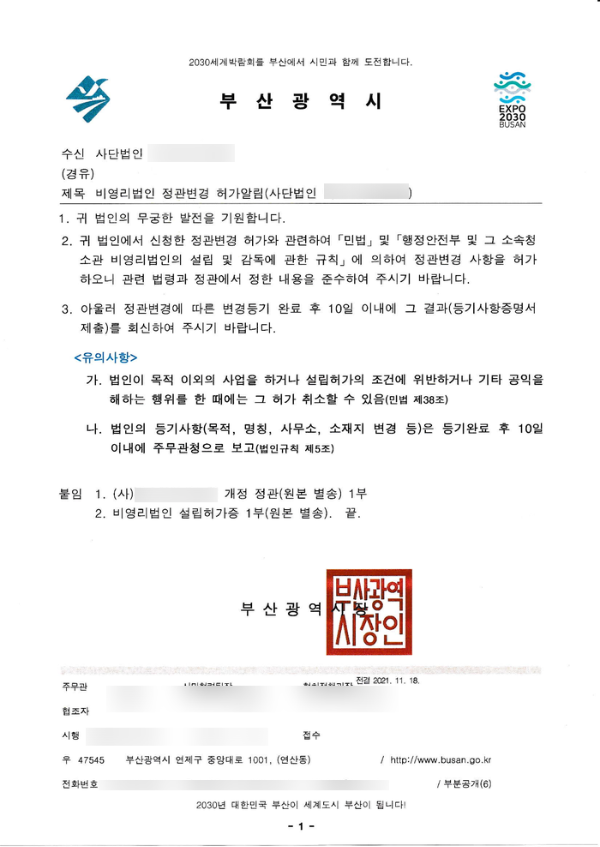 | 종교 사단법인 설립 허가증 수령 / 사단법인 설립 허가 업무 행정사 (1) | 2022.12.08 |