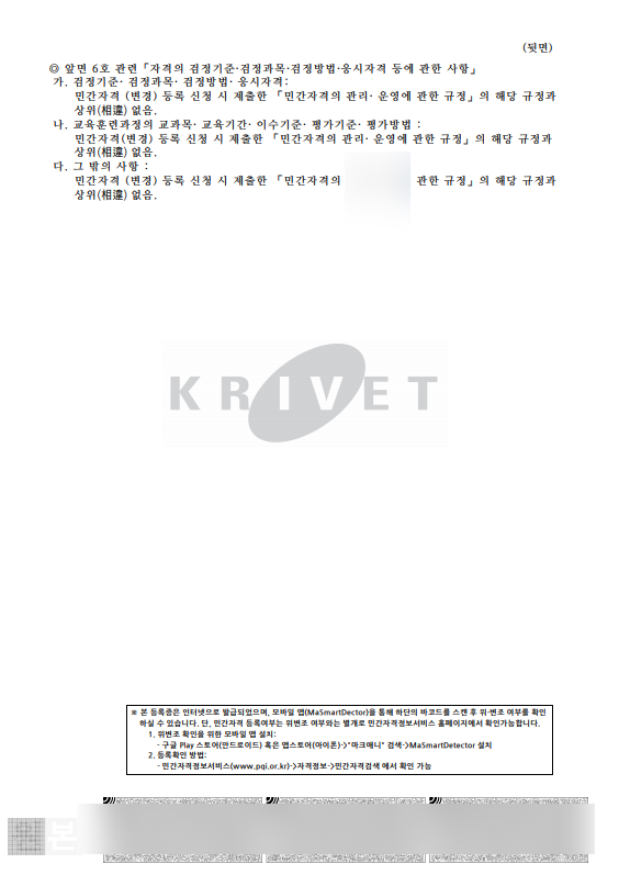 다만, 자격 명칭이 애매하거나 내용에 문제가 있을 경우 보완 등이 될 수 있으며, 이 경우 1~2개월 더 소요 될 수 있습니다.