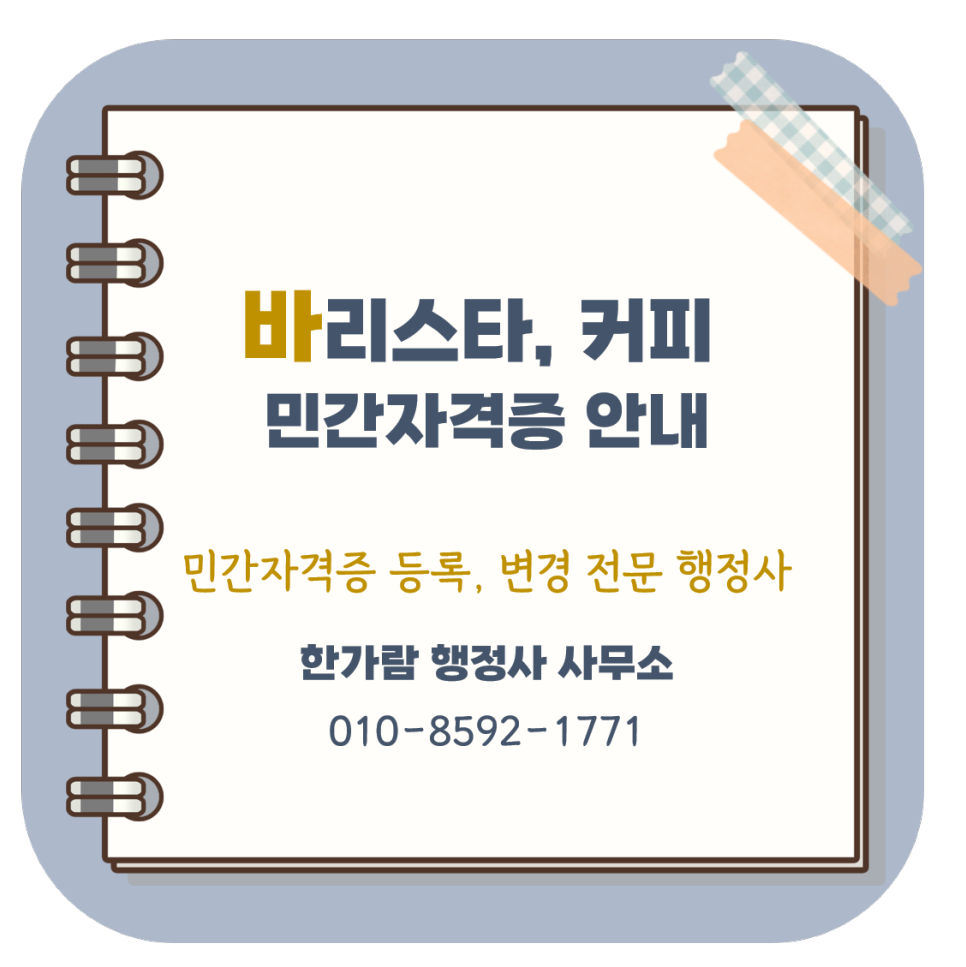 | 바리스타 협회 설립 후 민간자격증 등록 절차 및 서류 안내 (1) | 2022.11.18 |