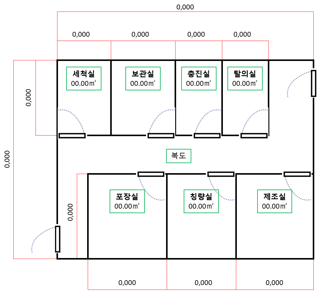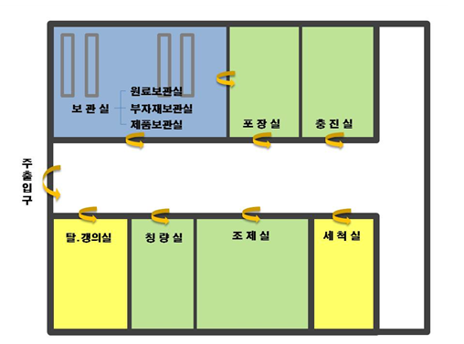 아래 그림은 최근에 진행 중인 화장품제조업 등록 신청 건의 제조시설 평면도입니다.