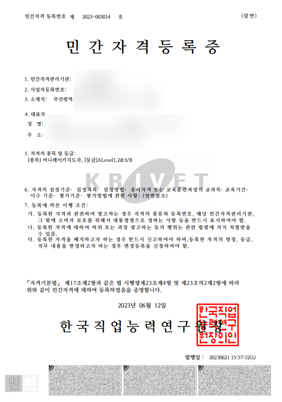 민간자격증 운영규정 작성에 필요한 사항들이 있습니다.