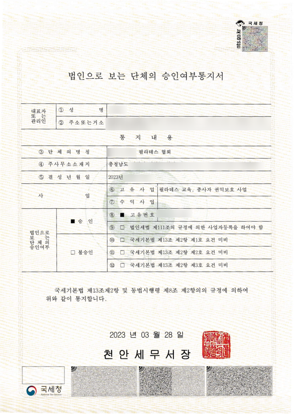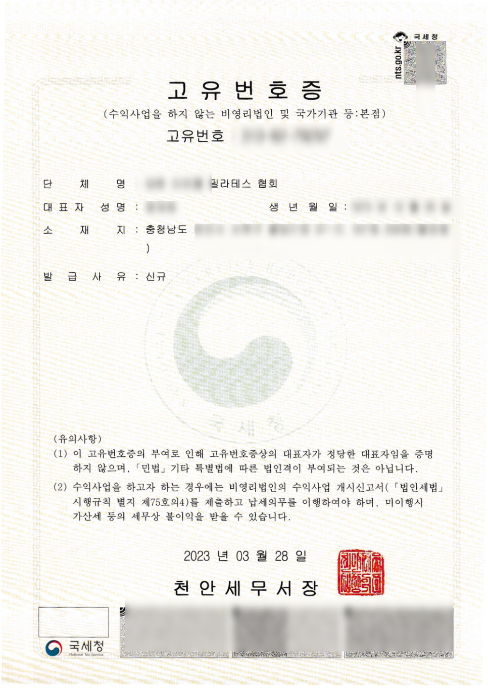 개인사업자의 사업자등록증과는 조금 다른 느낌을 주기도 하므로, 단체의 이미지 제고 차원에서 법인으로 보는 단체 설립과 고유번호증 발급을 받는 경우도 종종 있습니다.