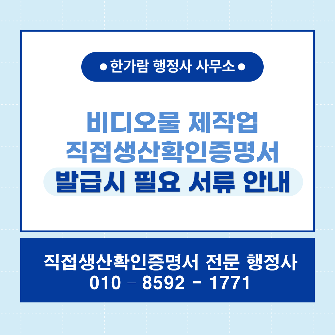 직접생산확인증명서 발급, 비디오물제작업 신고가 필요한 경우, 언제든 연락주시기 바랍니다.