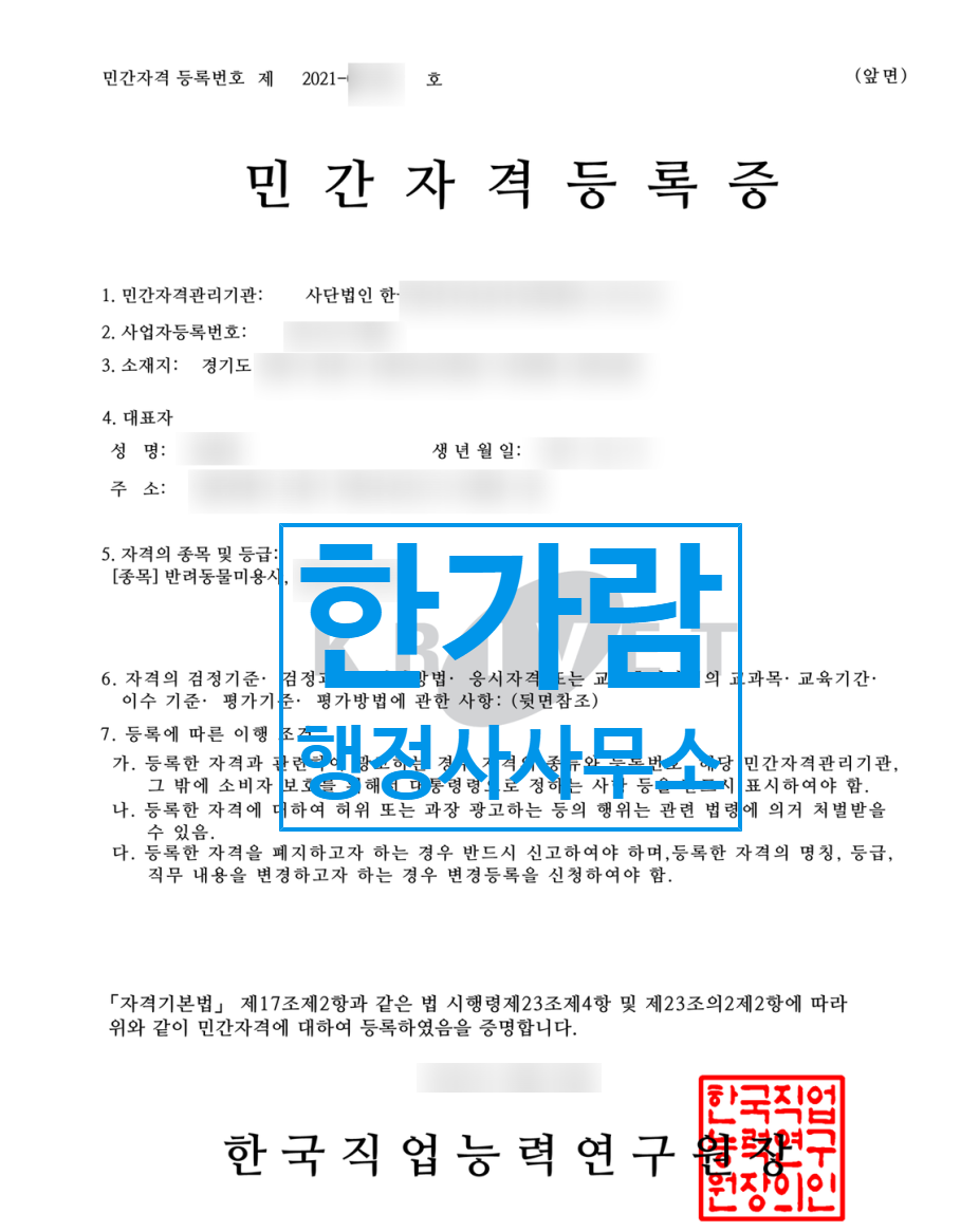 반려동물장례지도사, 미용사 등.. 반려동물 관련 민간자격증 등록 시 필요한 서류