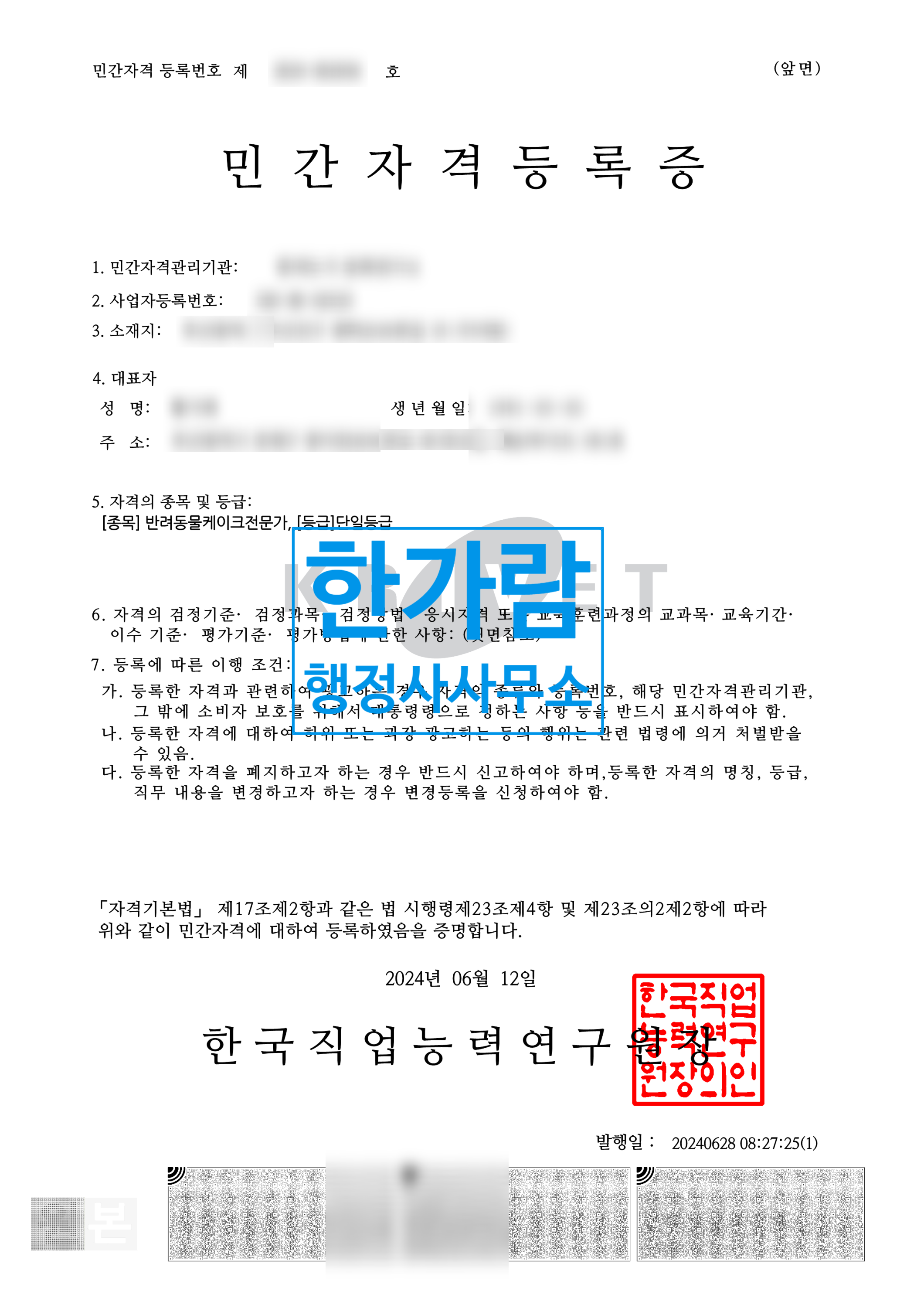 반려동물수제간식 전문가, 반려동물케이크 전문가 민간자격증 등록 시 필요한 서류