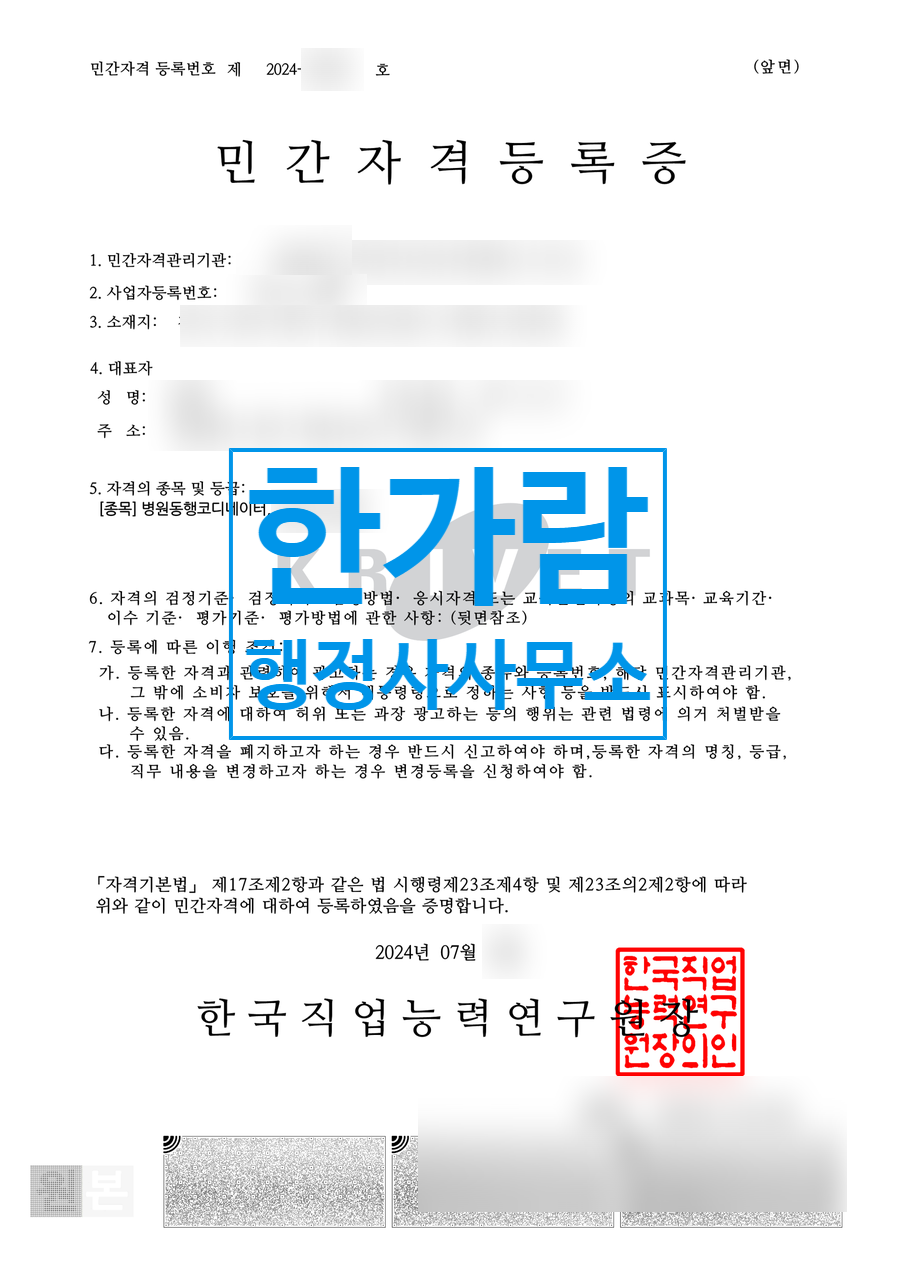 병원동행코디네이터 민간자격증 등록 이후 절차