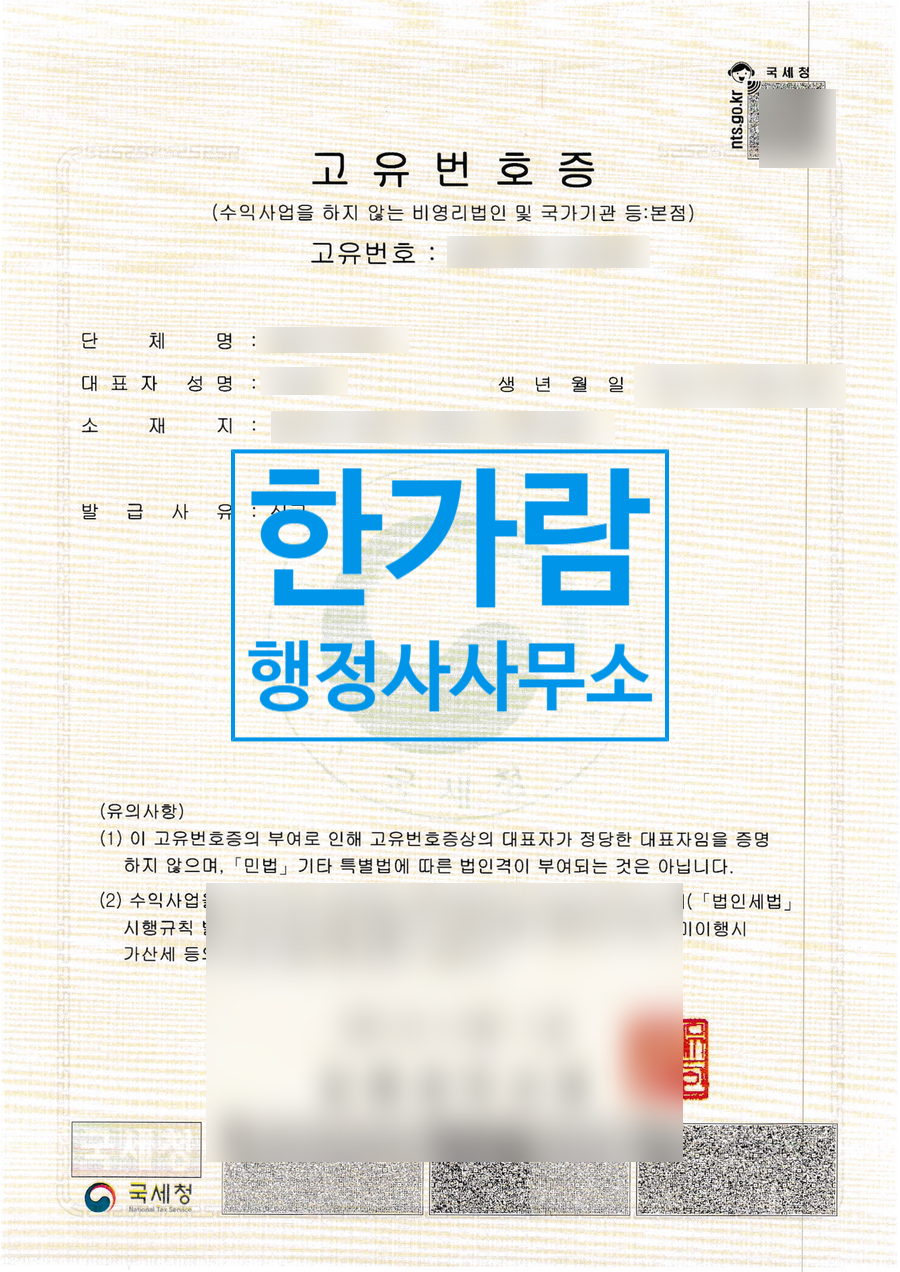 | 고유번호증 발급과 단체통장 개설 (0) | 2025.02.05 |