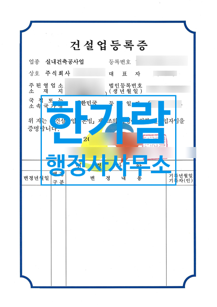 건설업, 실내건축공사업 면허 등록 절차(법인 기준)