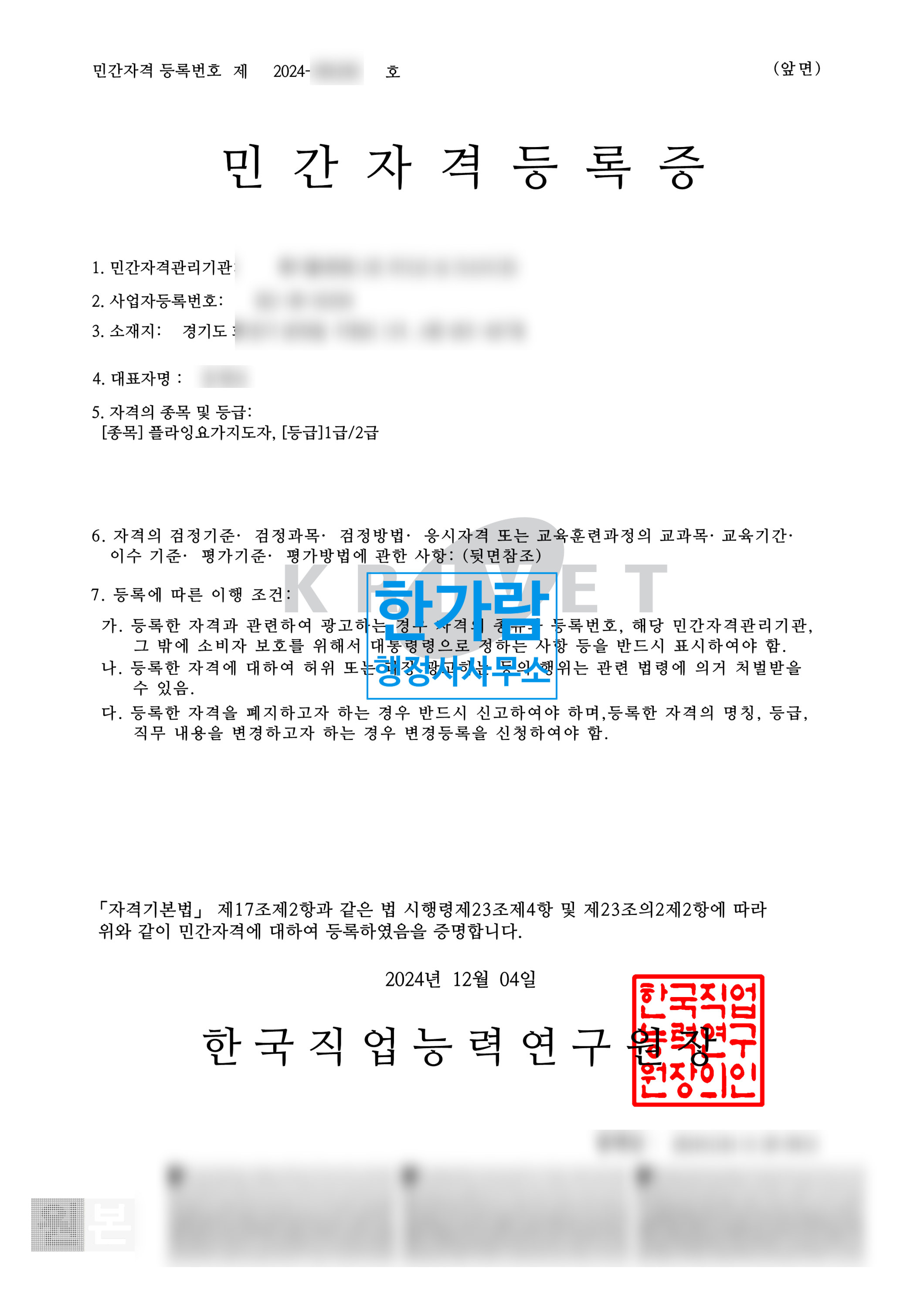| 필라테스 민간자격증 등록 절차 및 서류 (1) | 2025.01.13 |