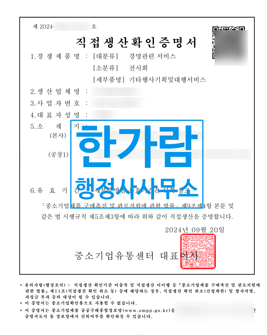 기타행사 직접생산확인증명서 발급신청 업무를 전문적으로 도와드립니다.