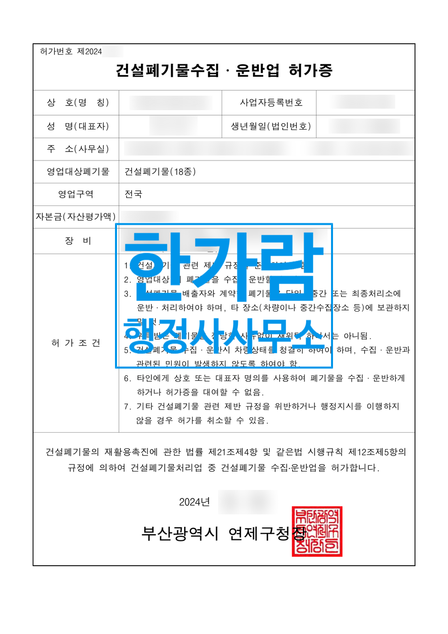 | 부산 건설폐기물 수집운반업 허가신청 전문 행정사 (0) | 2025.03.17 |