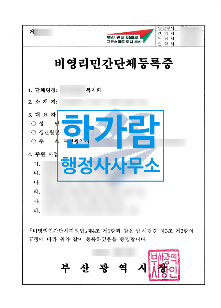 비영리민간단체 등록이 필요하시면 언제든 전화주세요