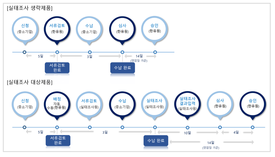 실태조사가 있는 제품과 없는 제품의 소요기간이 다릅니다.