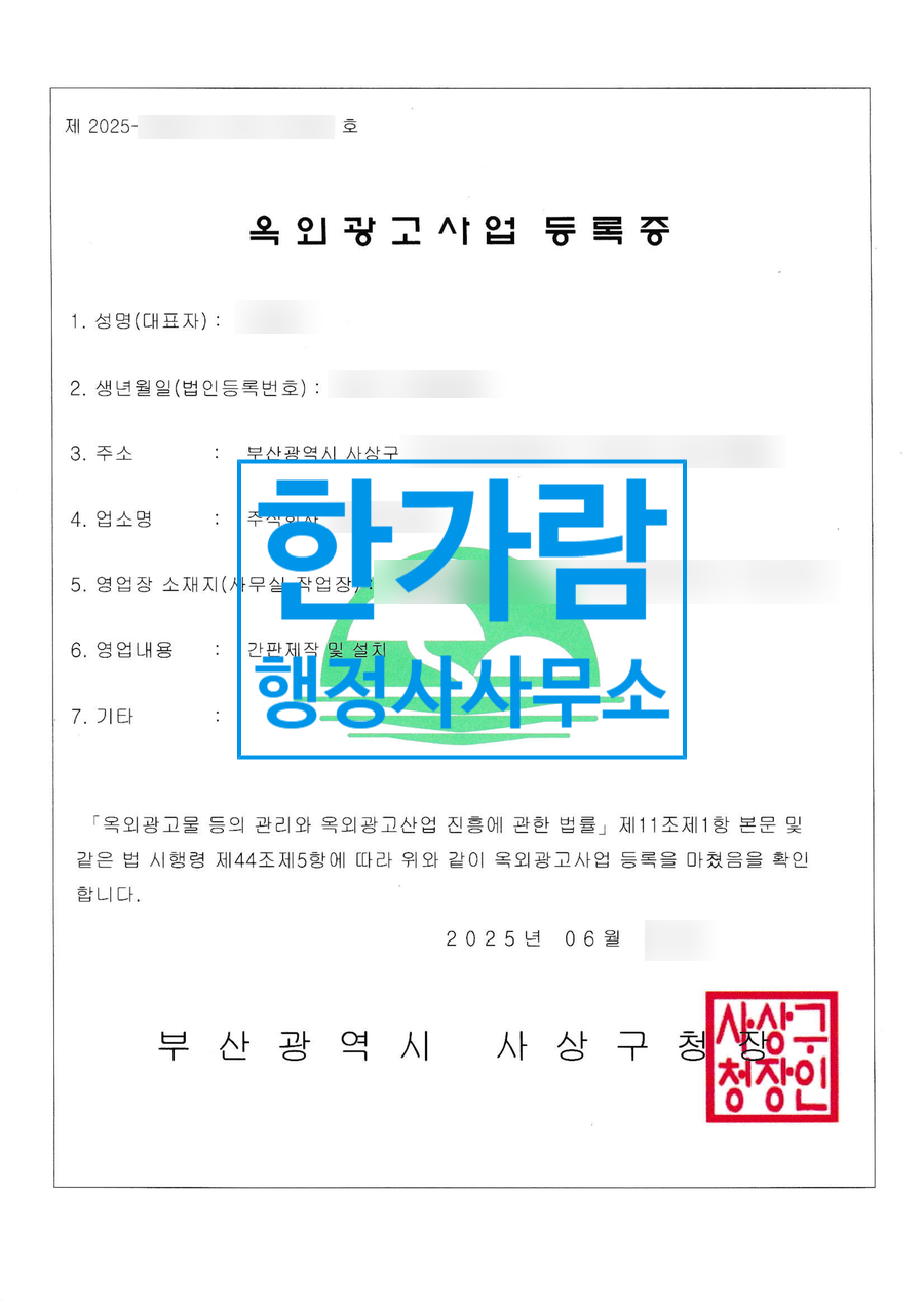 옥외광고업 등록이 완료되어 사례를 공유합니다
