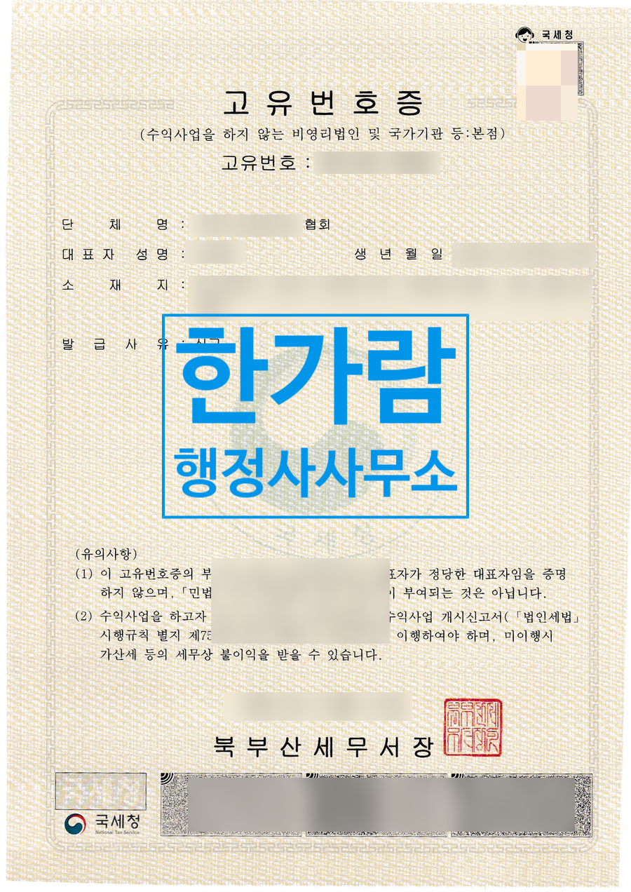예술단체 등을 하는 분들도 예술지원 사업에 참여하기 위해 고유번호증을 발급합니다.