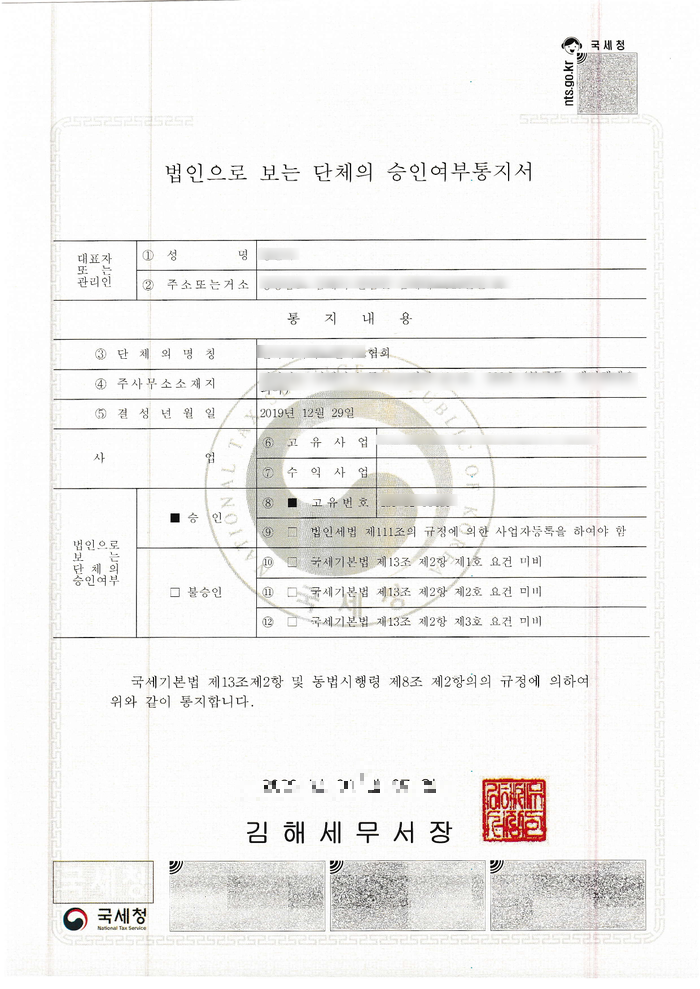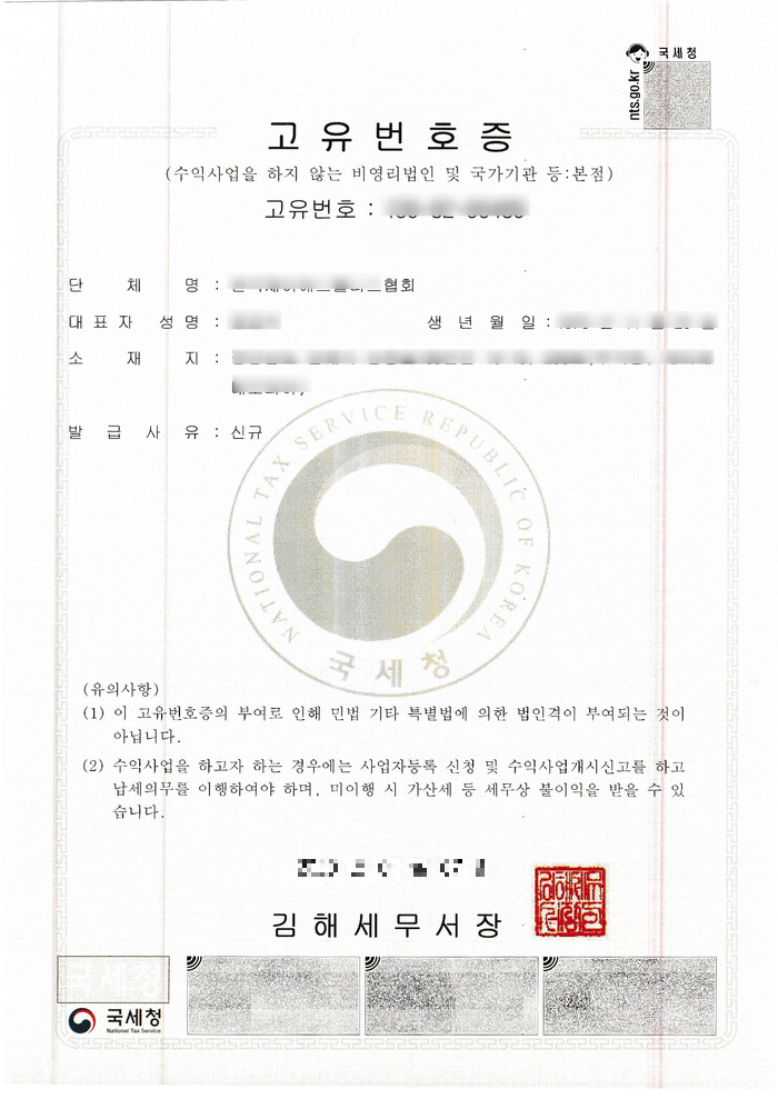 협회나 단체 등의 고유번호증 발급, 임의단체 등록이 필요하신 분들은 연락주시기 바랍니다.