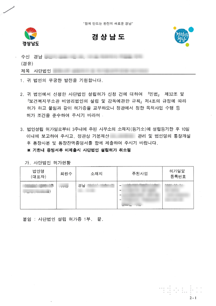 경남, 노인복지 사단법인 설립 허가 사례 보건복지부