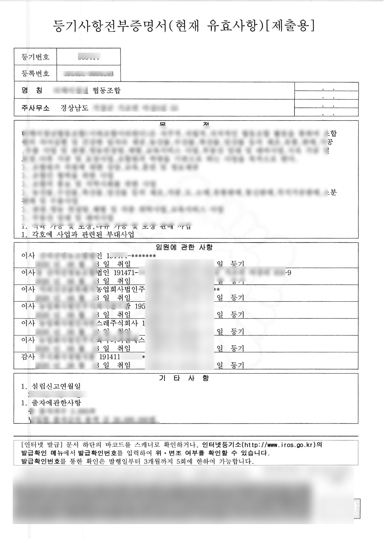 협동조합은 법인을 임원으로 선임하고 직무수행자를 선임하여 법인을 대리하여 활동을 할 수 있지만, 사실 이렇게 하는 경우는 많이 없습니다. 따라서 신고를 받아주는 공무원 분들이나 변경신고를 하는 저나, 변경 등기를 하는 법무사님이나 모두 고생을 했는데, 아무튼 서로 열심히 체크한 덕분에 다행히도 제대로 완료를 할 수 있었습니다.