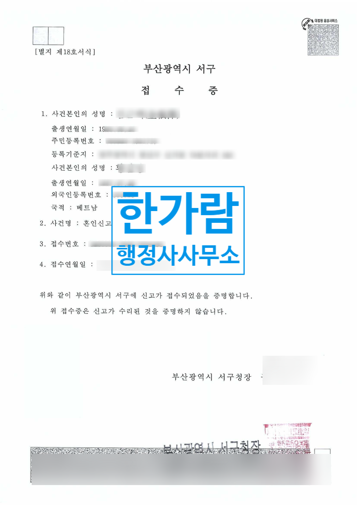 베트남 결혼으로 서류 대행이 필요하시면 언제든 전화주세요
