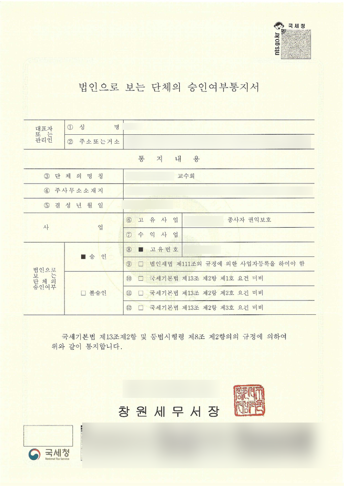 단체 고유번호증, 통장개설이 필요하신 분들은 언제든 연락주시기 바랍니다.