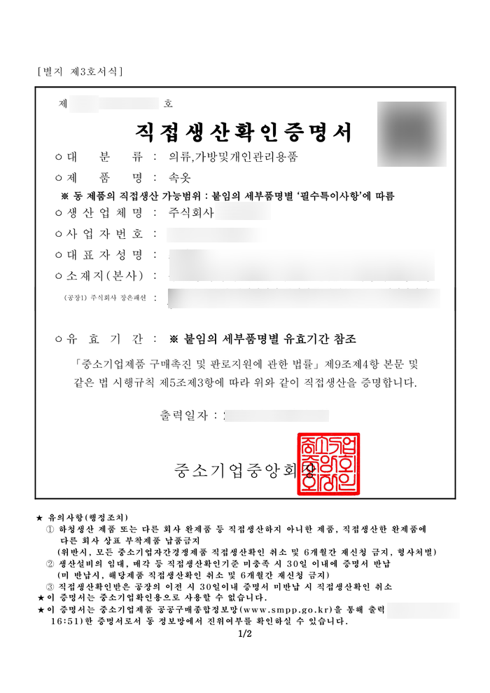 신청하는 직접생산확인증명서 종류에 따라 실사, 비실사가 갈리며, 서류 문제가 없고 실사가 끝난 뒤 심사가 완료되면 발급됩니다.