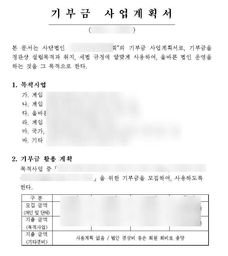 기부금 사업계획서 1부