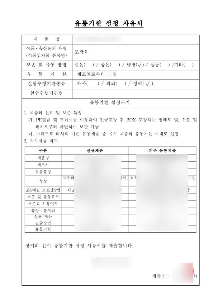 유통기한설정 사유서도 써서 내야 하는데, 이건 유사한 업체를 검색해서 진행하면 됩니다.