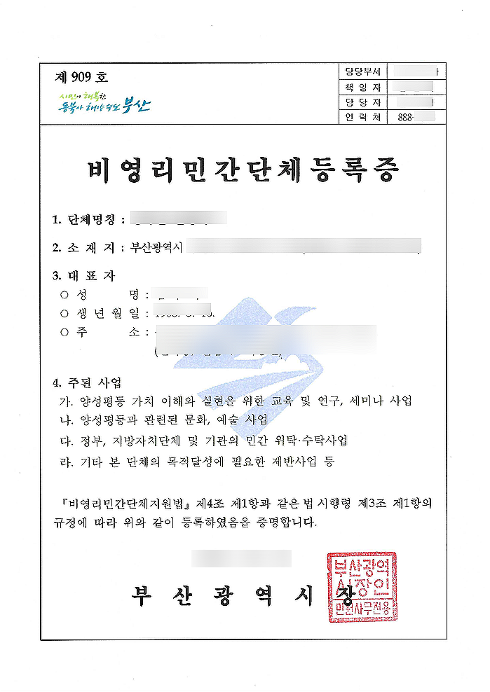 비영리 민간단체 등록시 자잘한 시행 착오를 줄이시기 원하신다면, 저희 한가람 행정 사무실로 전화/방문 문의 해주시면, 친절하게 안내 드리겠습니다.