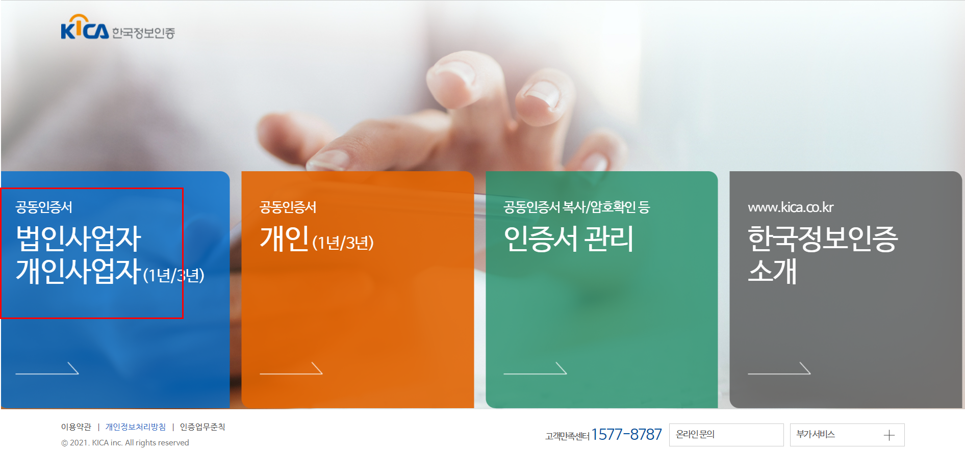 한국 정보 인증 사이트 접속합니다.