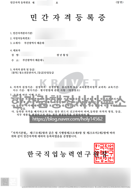 필라테스지도사 민간자격 등록증 , 청소전문관리사 민간자격 등록증 발급 성공사례