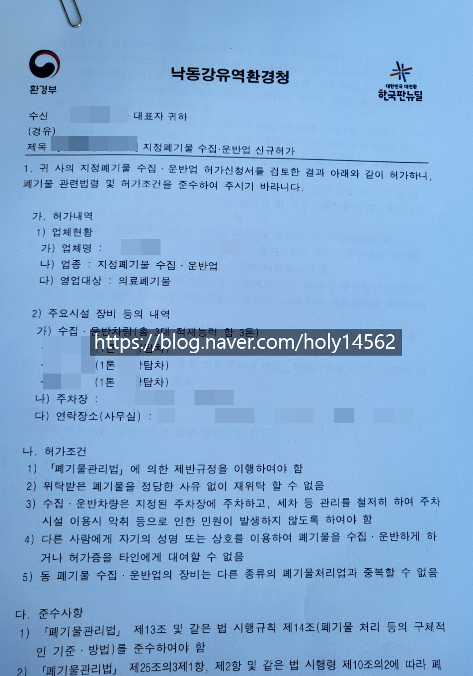 의료폐기물 수집운반 / 의료폐기물 수집운반업 신규 허가 성공사례 입니다.