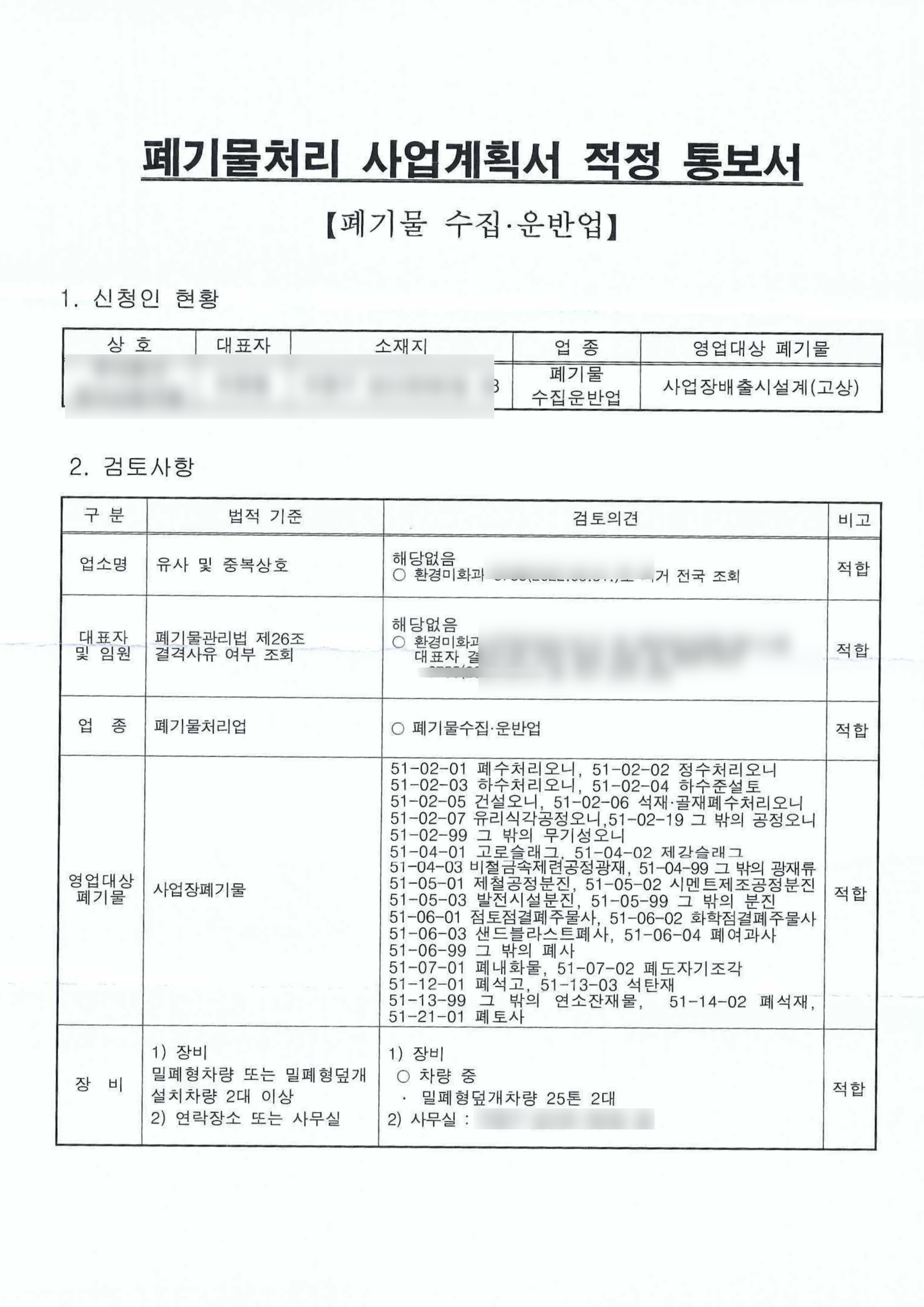 창원시로 부터 저희 한가람행정사무소에서 업무 도와드린 사업장폐기물 수집 운반업의 사업계획서가 적합 통보를 받았습니다.