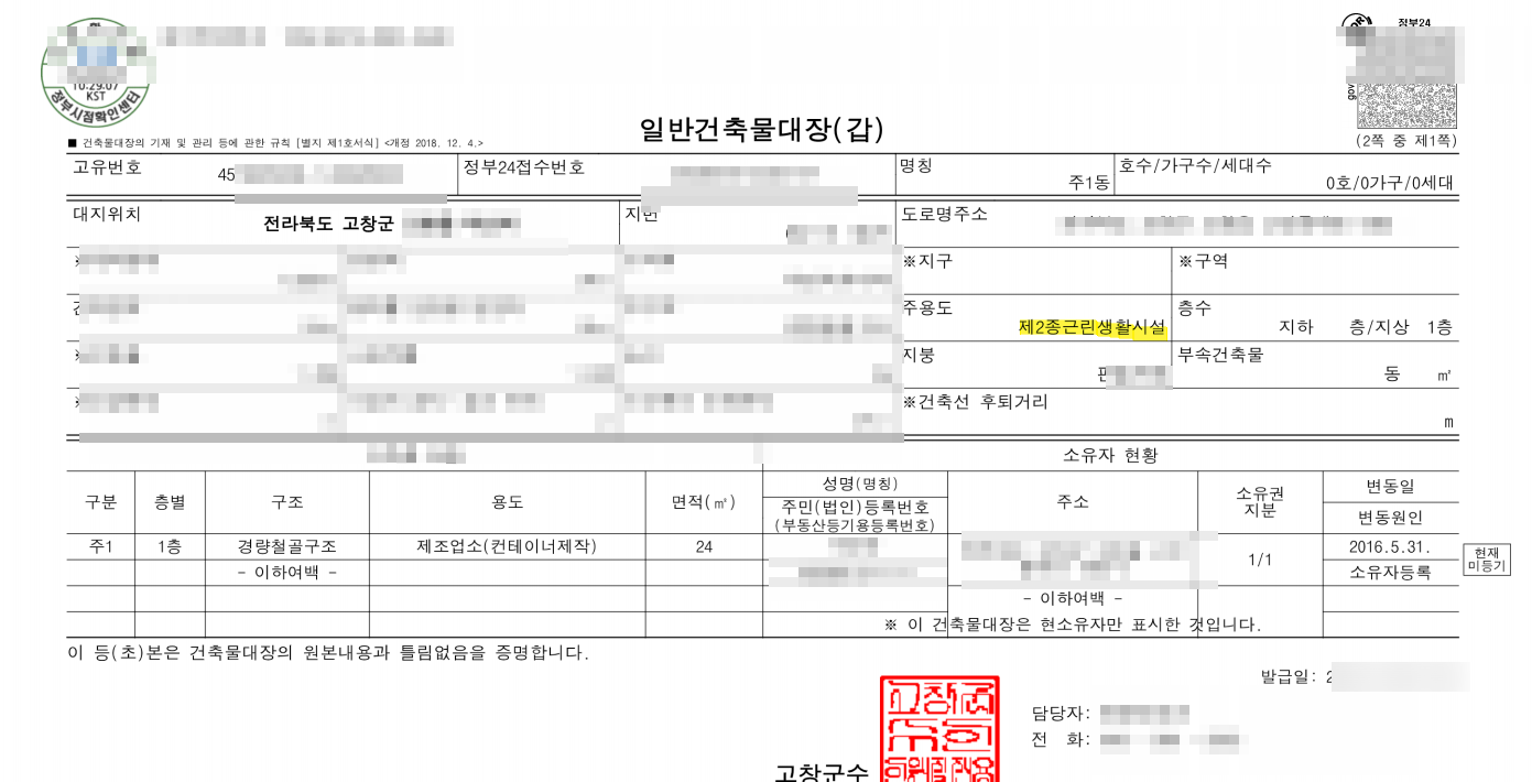 건축물대장 및 생산시설보유목록확인서 1부