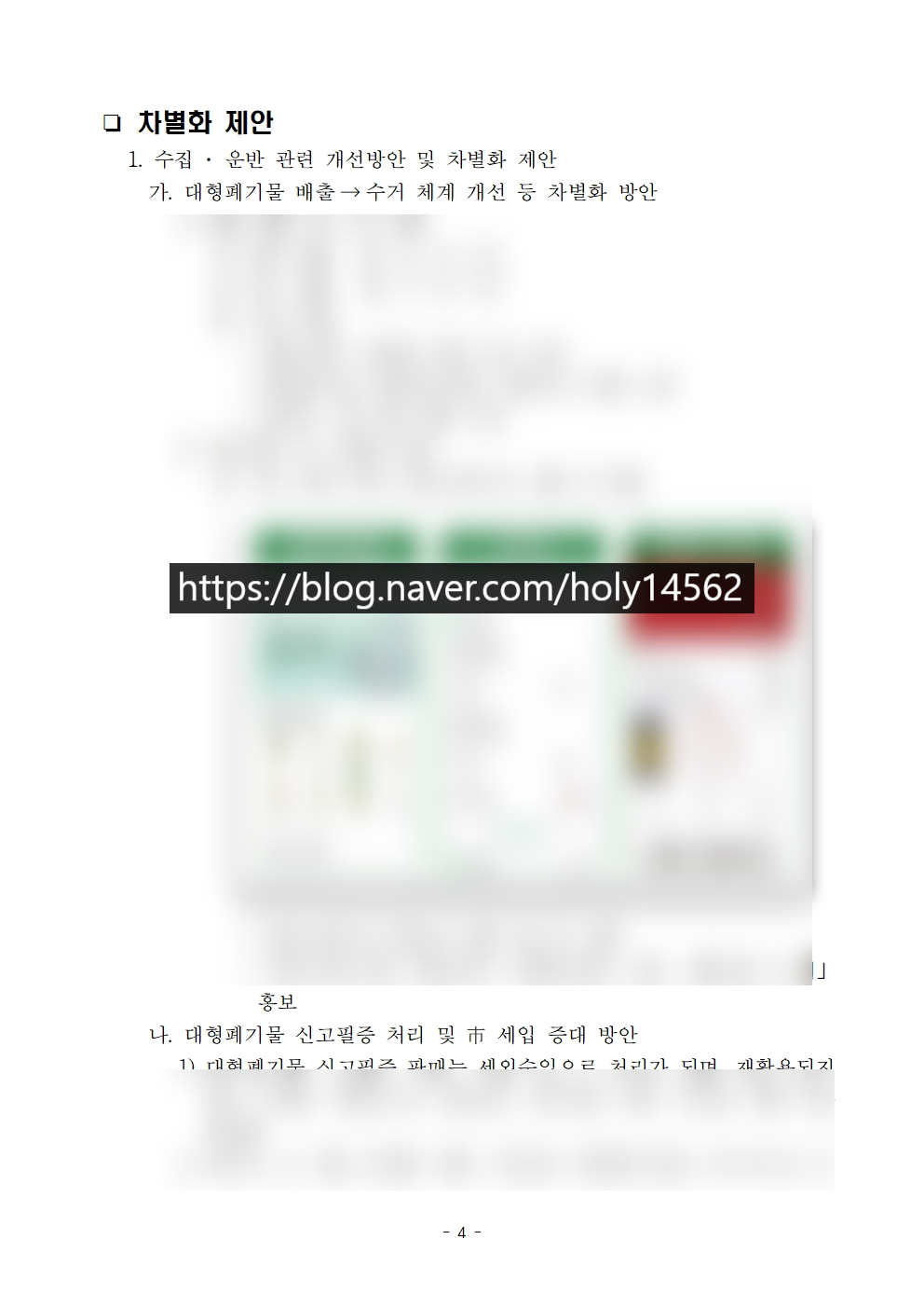 아래는 최근 저희가 작성한 대형폐기물 수집운반 처리 사업계획서의 일부입니다.