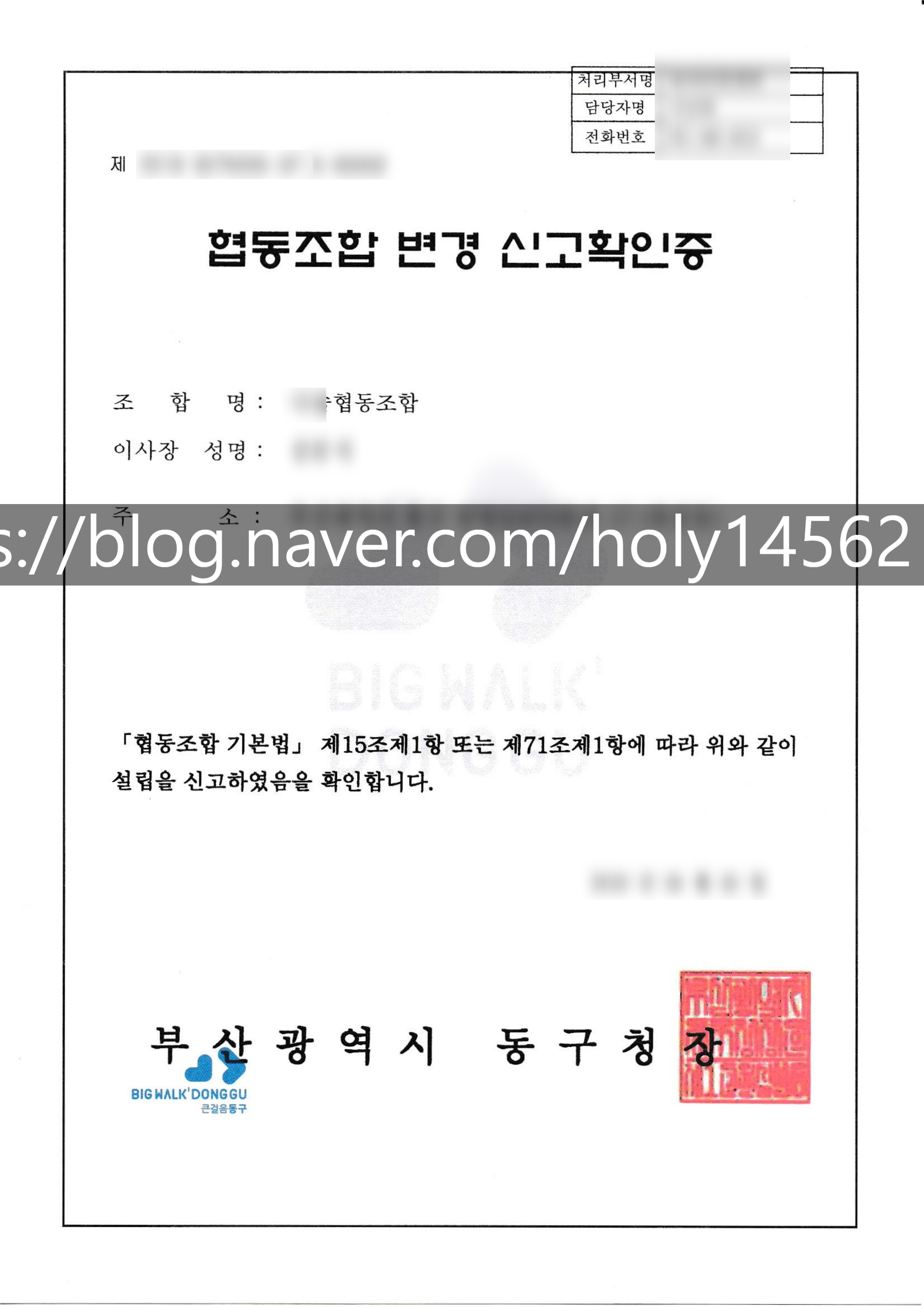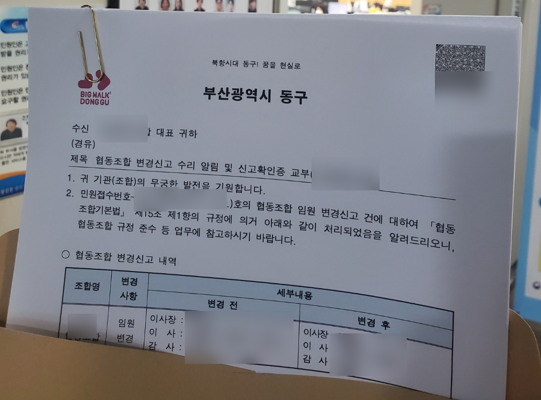 오늘은 협동조합 변경신고 완료에 대한 포스팅입니다.