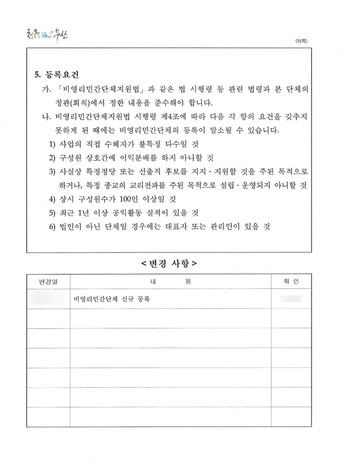 비영리민간단체 등록에 필요한 서류와 기간은?