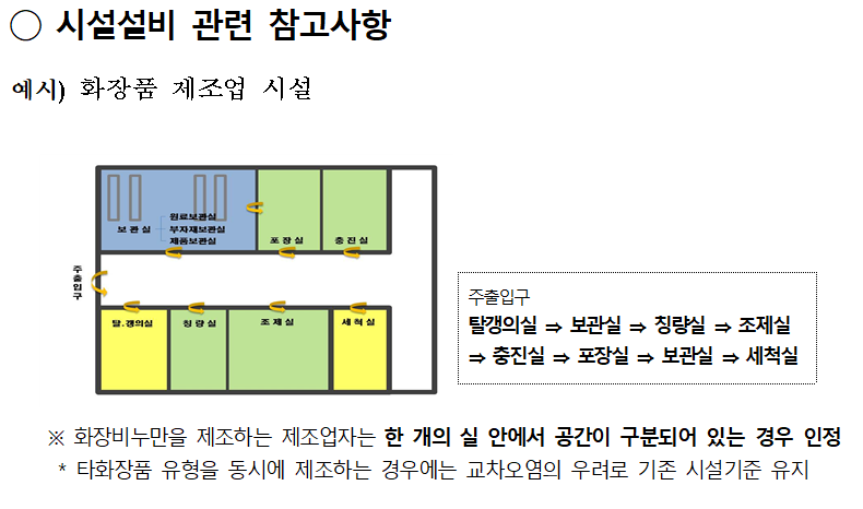 화장비누만을 제조하는 제조업자의 경우 한개의 실 안에서 공간이 (예 : 구분선 등) 간단히 구분된 경우에도 인정이 됩니다.