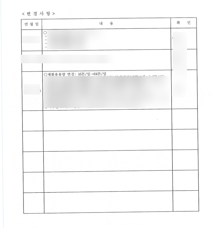 약 1달 정도 업무 기간이 소요되었으며, 보관량의 증가와 동시에 1일 처리량 16톤에서 4배 정도인 60톤으로 변경허가를 받았습니다.