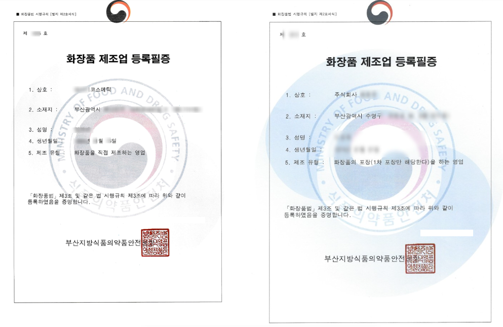 화장품제조업 등록을 위한 서류는 다음과 같습니다