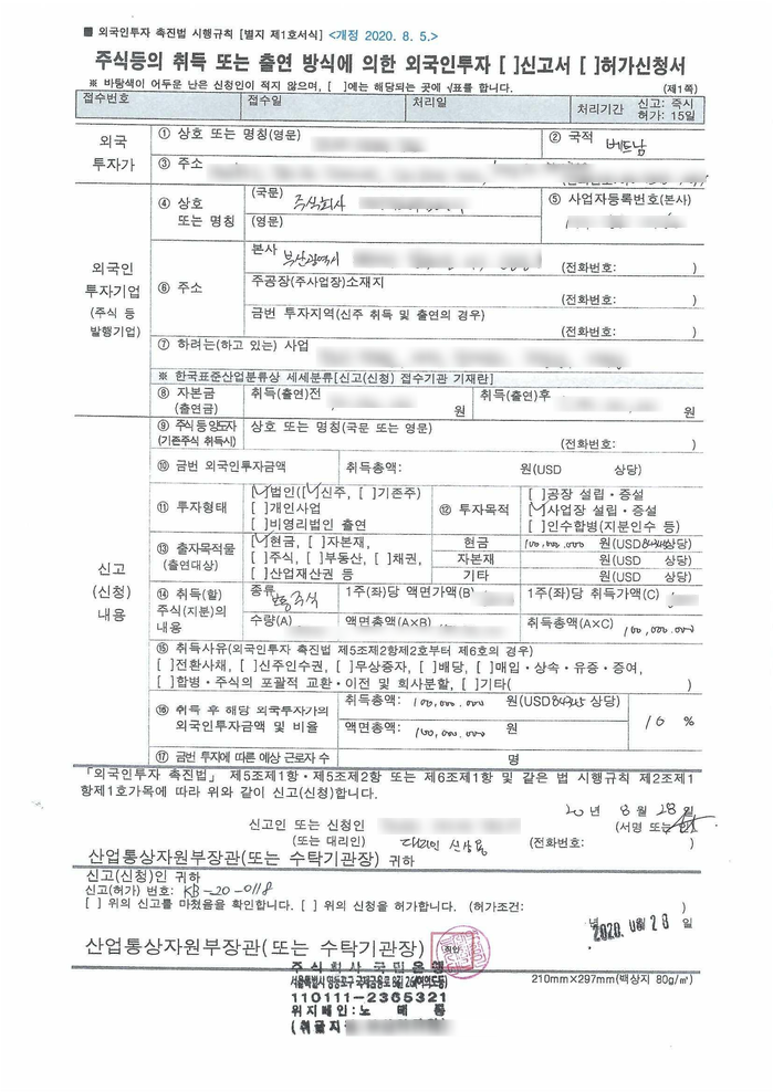 제반 서류를 구비하여 투자비자 신청가장 먼저 진행되는 절차는 외국환 은행에 투자신고를 하는 일입니다. 투자자가 한국에 있든 외국에 있든 위임장을 작성해서 일반적으로 업무를 합니다. 단 해외의 경우 공증 및 아포스티유 해서 들고와야 합니다.