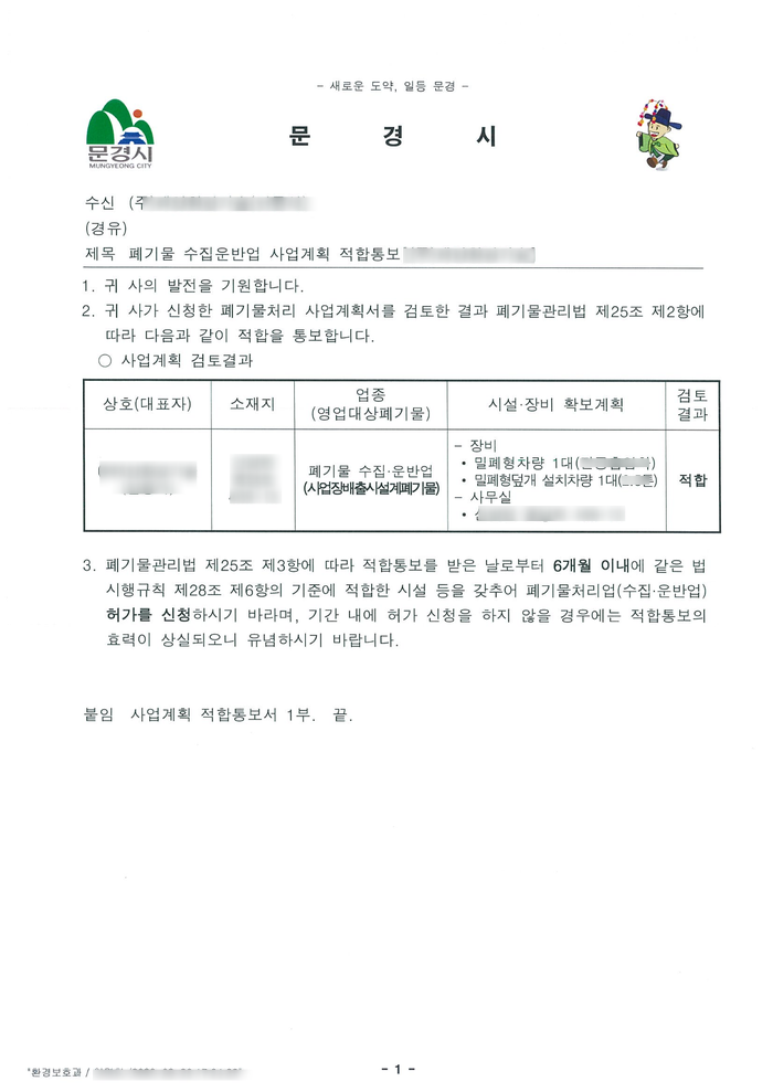 허가에 걸리는 기간은 총 2달 정도로 사업계획 적합통보까지는 1개월 정도 소요됩니다. 폐기물 수집운반업 허가 관련해서 상담, 대행이 필요한 분들은 언제든 연락주시기 바랍니다. 감사합니다.