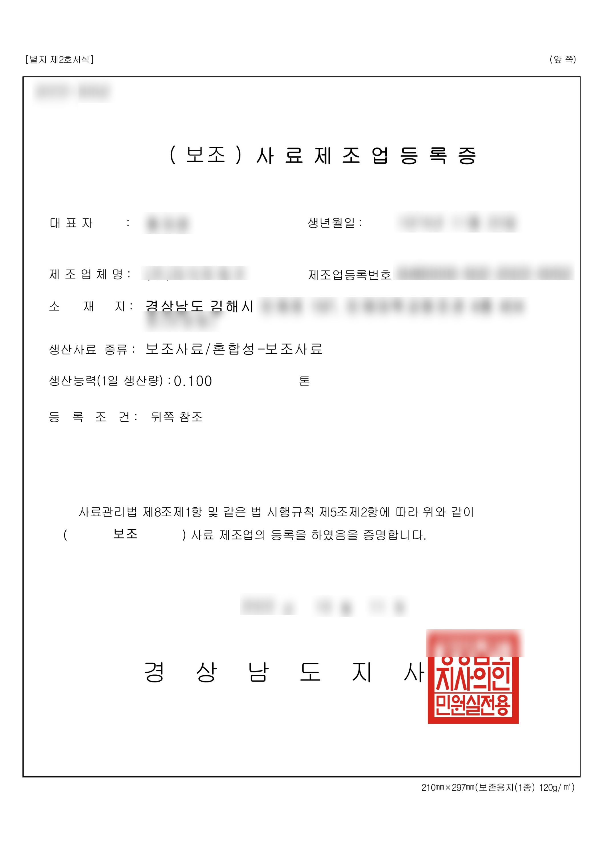 영업 등록을 받고자 하는 사료 성분에 따라 단미사료인지, 보조사료 인지 아니면 둘을 합친 배합사료 인지 알 수 있습니다.
