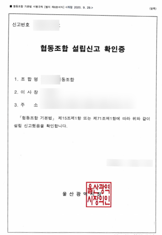 또한, 협동조합은 임원 변경, 정관 변경 등도 모두 신고를 해야 하기 때문에, 자주 바꾸지 않도록 미리 확실하게 선정해 두시는 것이 좋습니다.