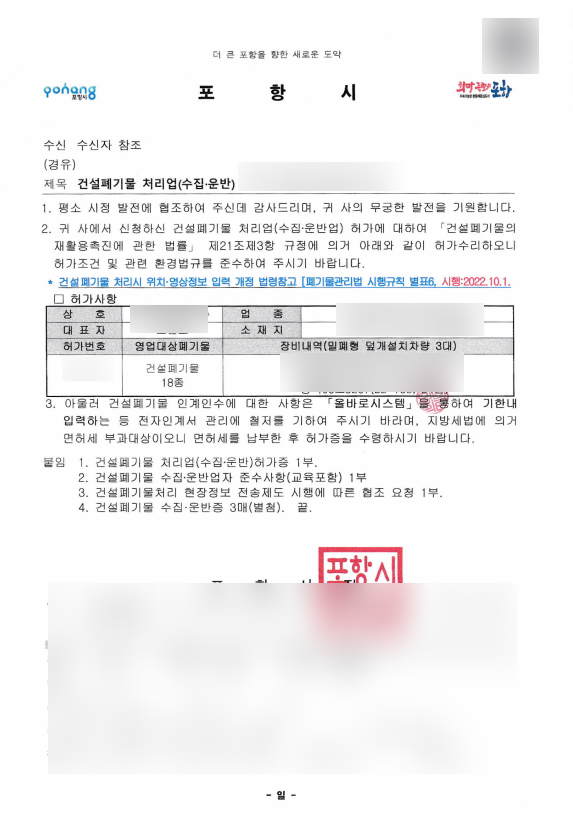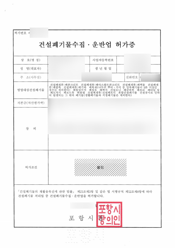 이번 의뢰인은 폐기물수집운반업 허가는 있으셨기에, 본 건으로 의뢰를 주셨습니다.