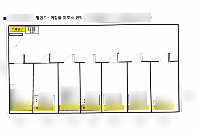 우선 방은 기본적으로 7개입니다. 탈의실, 제조실, 충진실, 칭량실, 포장실, 보관실, 세척실입니다. 여기서 공정이 간단할 경우 제조와 충진, 칭량은 한꺼번에 할 수 있으나, 책상 등으로 구분이 되어야 합니다. 또한, 탈의실, 포장실, 보관실, 세척실 등은 같이 둘 수 없고 별도로 둬야 합니다.