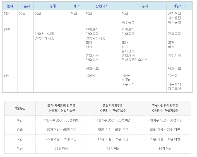 전문인력은 2명 이상이 상시근무를 해야합니다. 인정이 되는 자격의 종류는 아래와 같습니다. 만약, 인정되는 자격이 없다면 초급 건설기술인을 고용해도 전문인력으로 인정을 받을 수 있습니다. 초급 건설기술인의 경우 개인마다 다르지만, 고졸인 경우 자격증과 4년 이상의 경력이 있어야 하며, 대졸(학사 이상)인 경우 졸업 후 4년 이상의 경력 혹은 자격증 + 경력으로 초급 건설기술인이 될 수 있습니다.