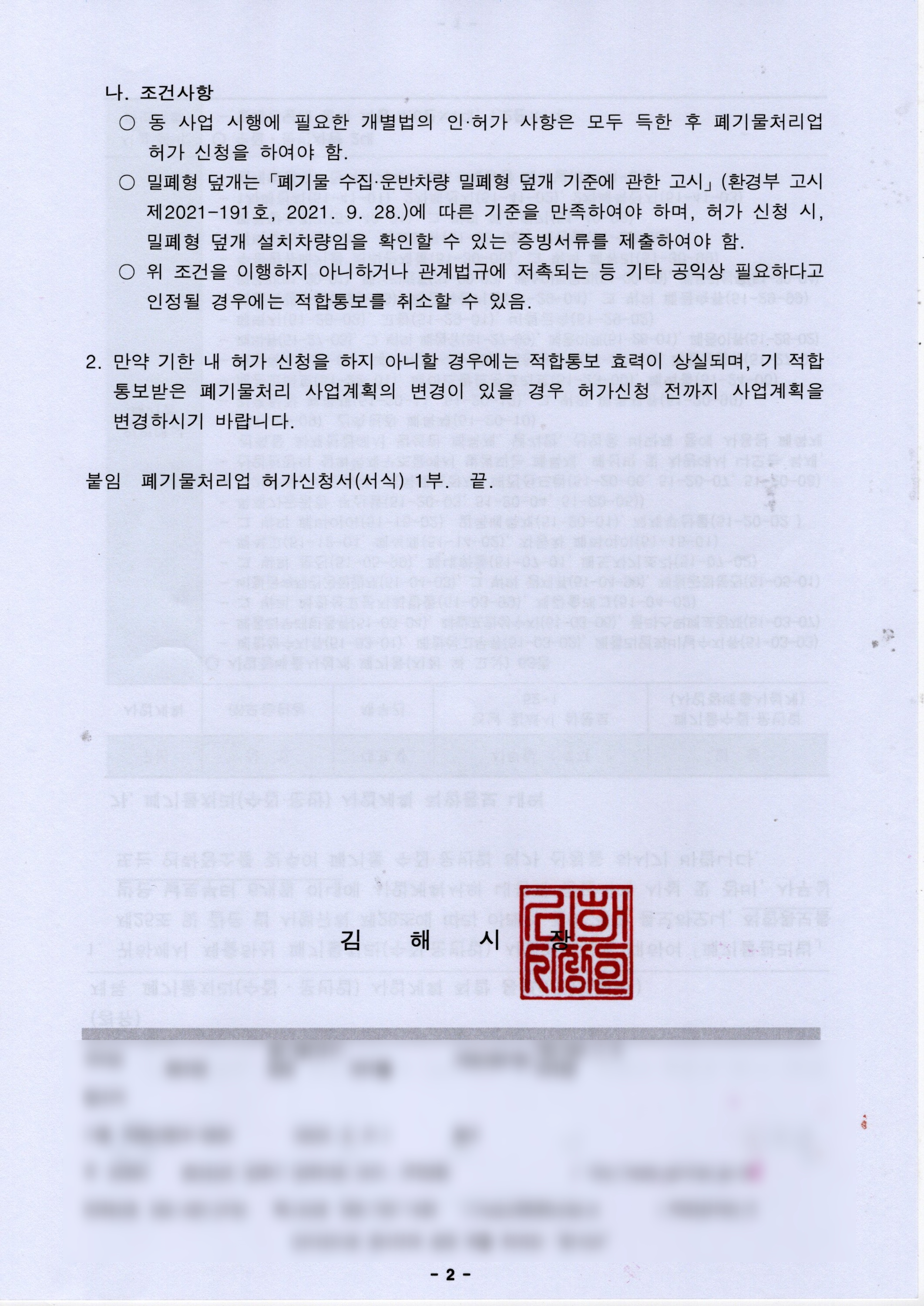 | 대구 경북 사업장폐기물 수집운반 허가 사업계획서 적정통보 수령 (0) | 2025.12.10 |